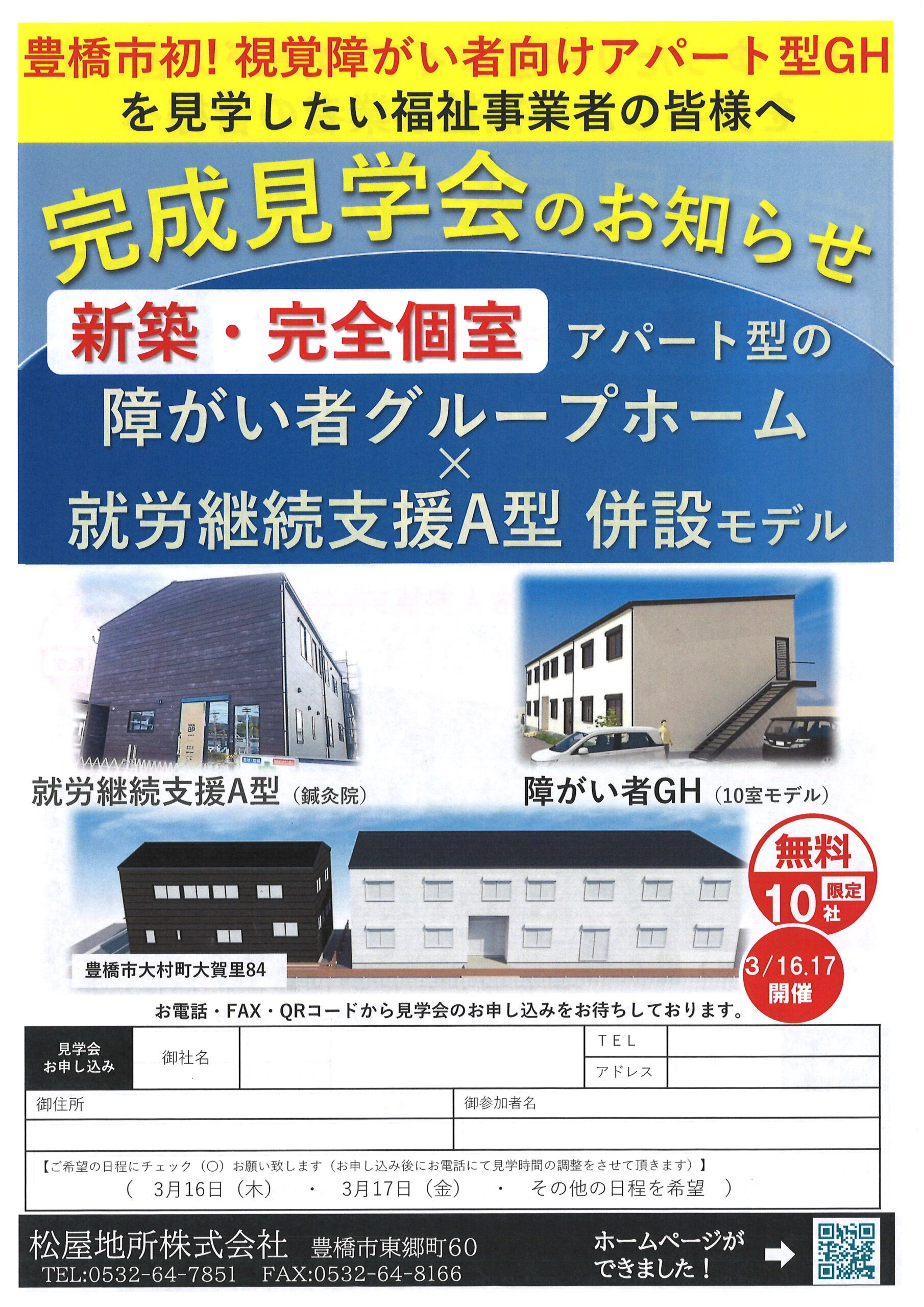 3月16日・17日 就Aアパート型GH 完成見学会!